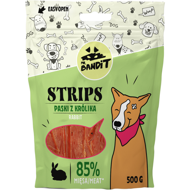 Supermiękka przekąska dla psich urwisów! Lekkostawne mięso z królika to idealne rozwiązanie dla wymagających łobuziaków. Pyszny i delikatny smakołyk, który kochają wszystkie psy.
