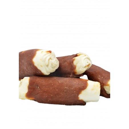 Smakołyk dla psów lubiących wyzwania. Gryzak owinięty aromatycznym mięsem z kaczki skutecznie obezwładni psich łobuziaków! Odpowiednia twardość i wielkość przekąski jest gwarancją smakowitej rozrywki na długi czas!
