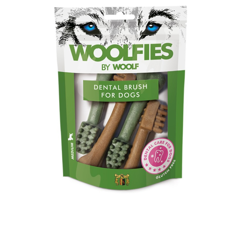 Przysmak dentystyczny Woolfies dla psów, to sposób na utrzymanie zdrowia jamy ustnej Twojego zwierzaka i uniknięcie pojawienia się kamienia nazębnego lub płytki nazębnej. Przysmak w kształcie szczoteczki do zębów firmy Woolfies jest wykonany z naturalnych składników i działa na zęby, utrzymując je w czystości i zdrowiu. Przysmak dentystyczny wzmacnia zęby i szczękę a składniki są łatwo przyswajalne. Nowa seria Woolfies nie zawiera konserwantów, barwników ani dodatków chemicznych.