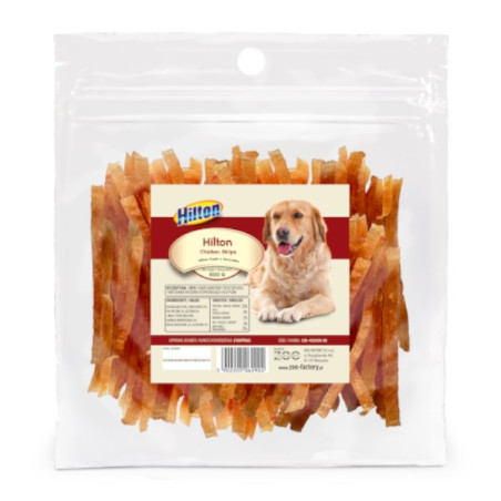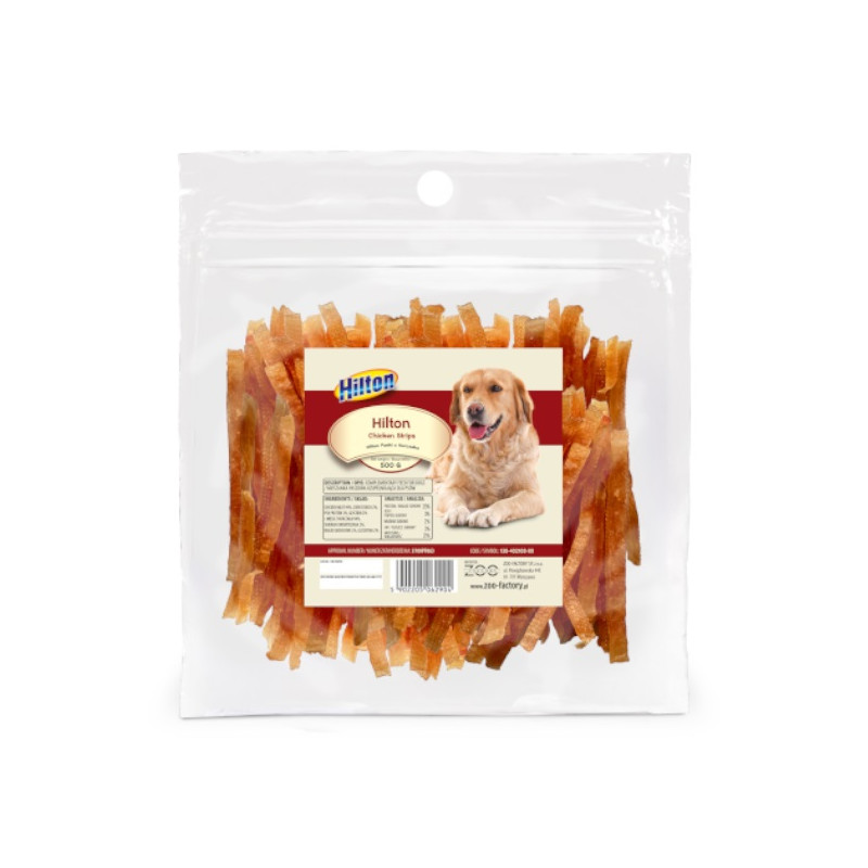 SKŁAD: mięso z kurczaka 94%, skrobia kukurydziana 2%, białko grochowe 2%, gliceryna 2%.