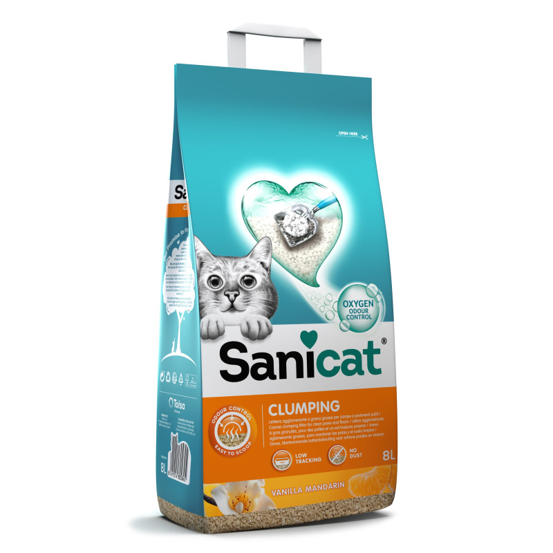 Sanicat Clumping Vanilla & Mandarin to wysokiej jakości bentonitowy żwirek dla kotów, który skutecznie pochłania wilgoć i zapachy, zapewniając czystość i świeżość w kuwecie każdego dnia.